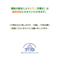 あとうデンタルクリニックご予約について 完全予約制03-3974-5277